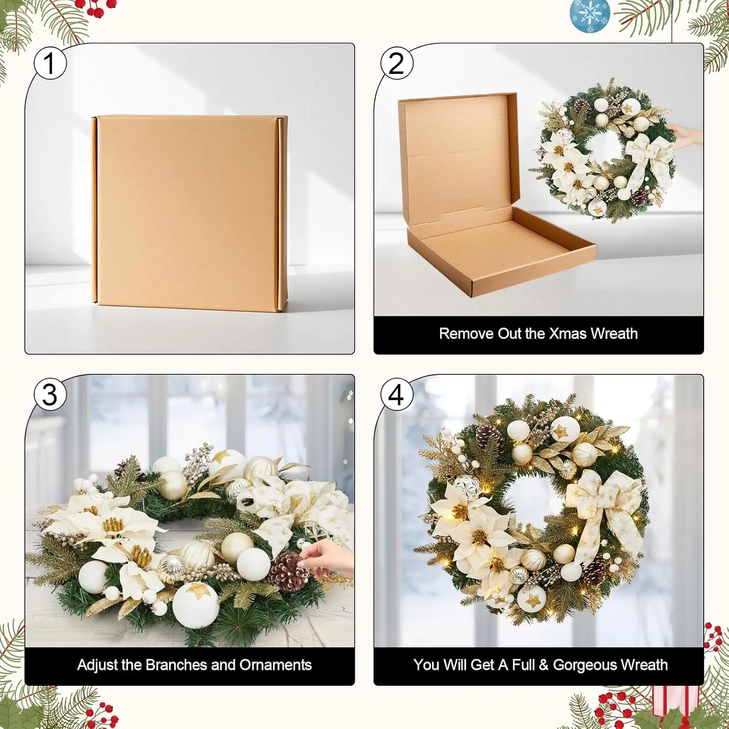- Generous 24-inch size creates a striking focal point on your front door or indoors, instantly adding festive curb appeal that lasts all season.