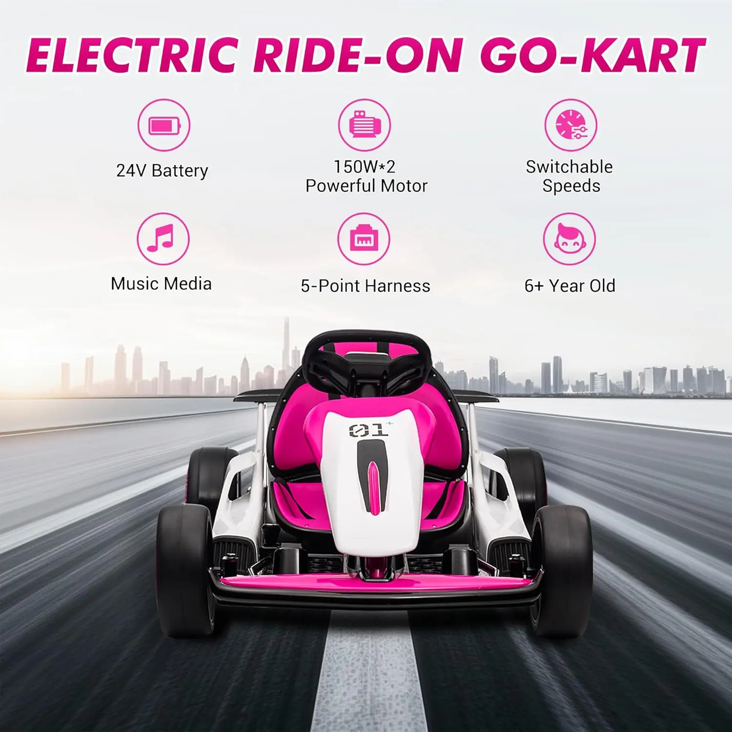 Electronic 24V Ride On Go Kart With Dual 200W Motors LED Lights Drift Mode For Ages 6 To 12