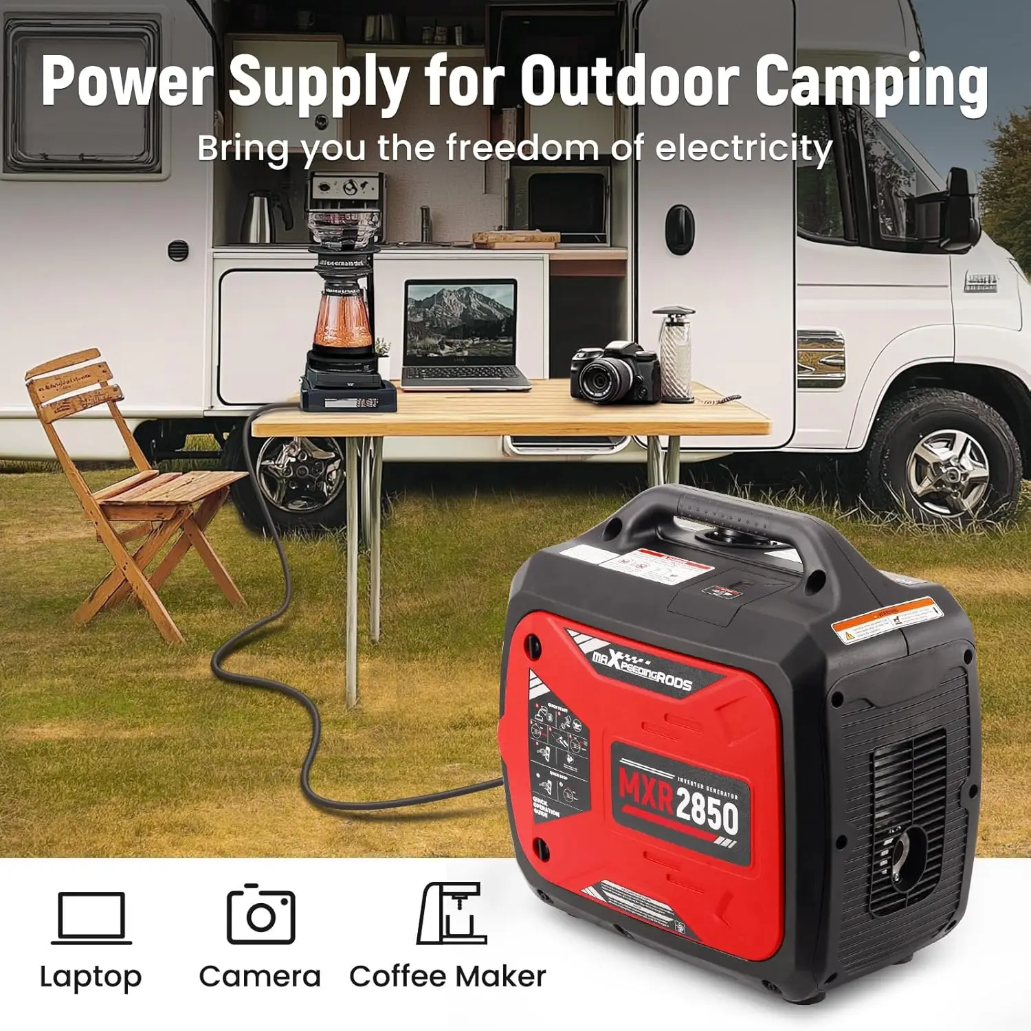 - You get 2850W max, 2200W running from a gas-powered inverter, delivering steady, efficient power for camping, RV trips, festivals, and home backup.