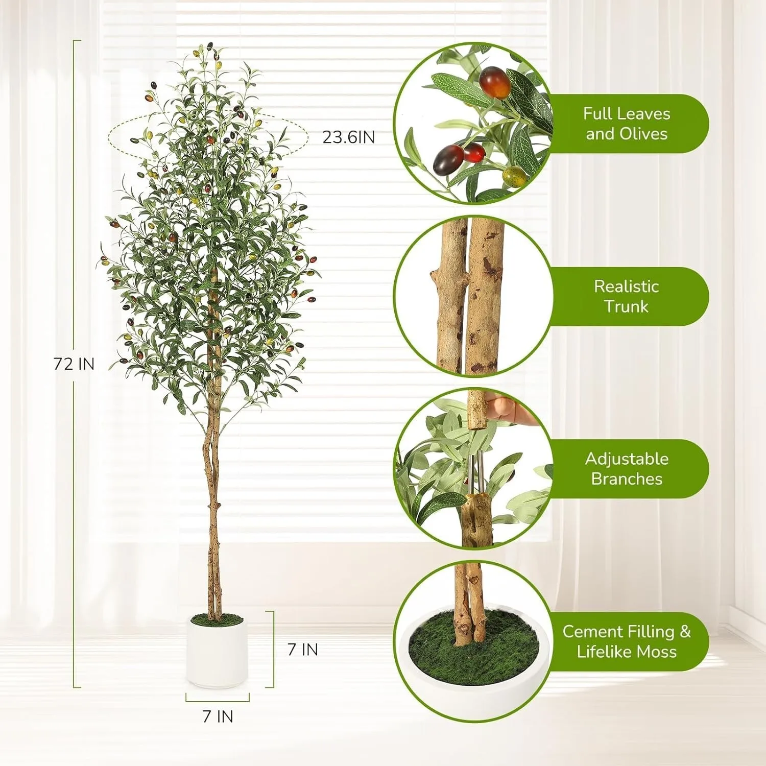 Transform your space with a lifelike 6-foot faux olive tree, ideal for indoor decor, that stays lush year after year, adding natural beauty to any room without the upkeep.