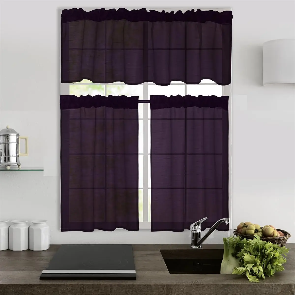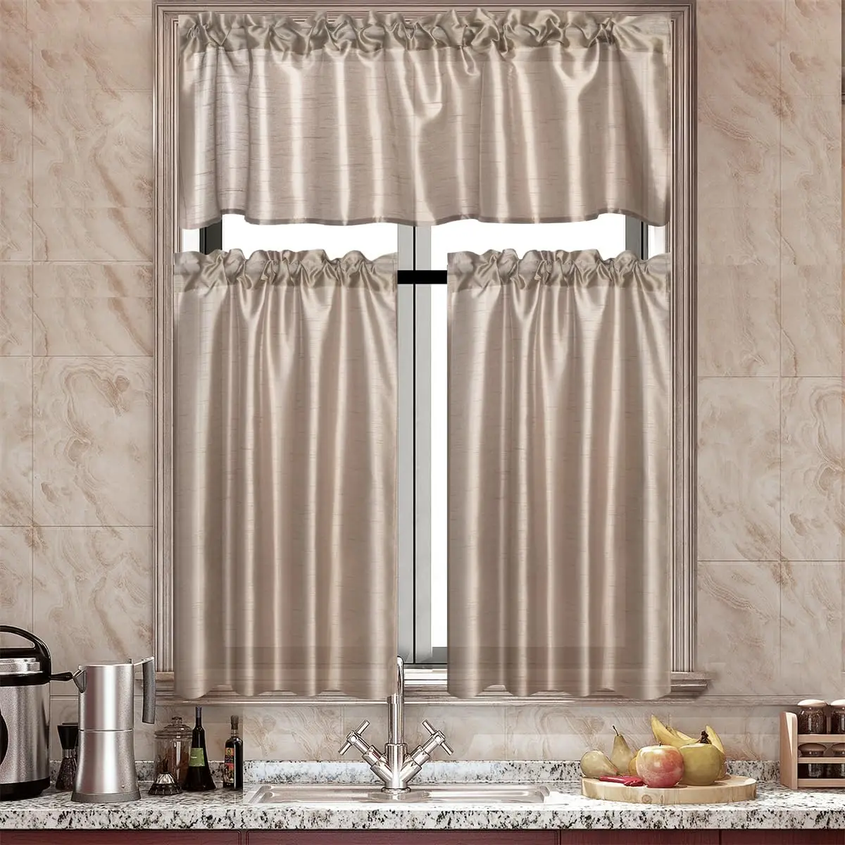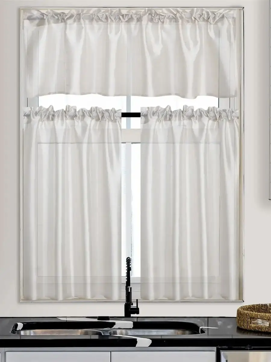 Jiangsu Craft Of Weaving Faux Silk Sheer Curtain Set 3 Panels With Valance