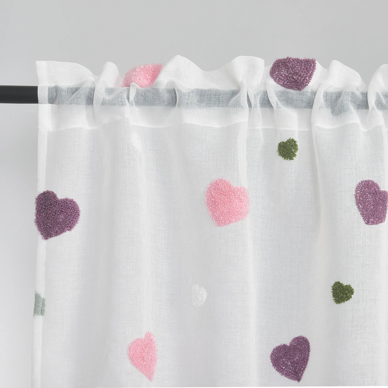 Elevate your space with a heart-patterned, rod-pocket curtain set that blends soft light with modern texture.