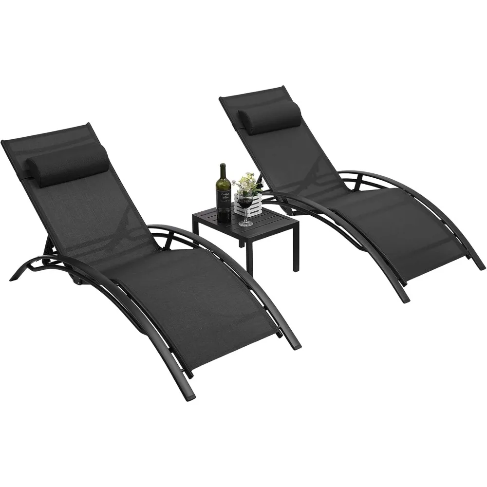 HUANZHUANG Pool Lounge Chairs Set With Headrest Adjustable
