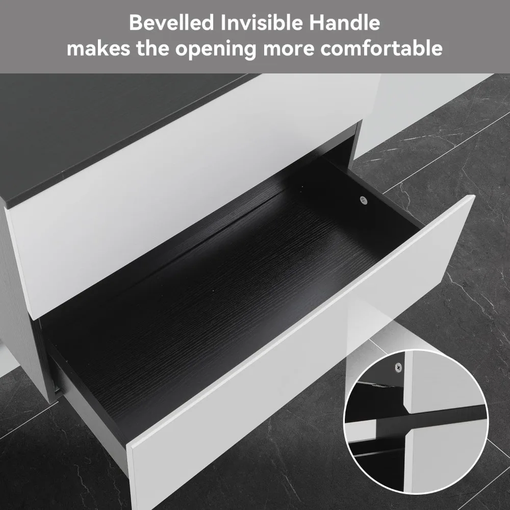 - Two drawers glide smoothly and close quietly, keeping your cosmetics, toiletries, and towels within easy reach.