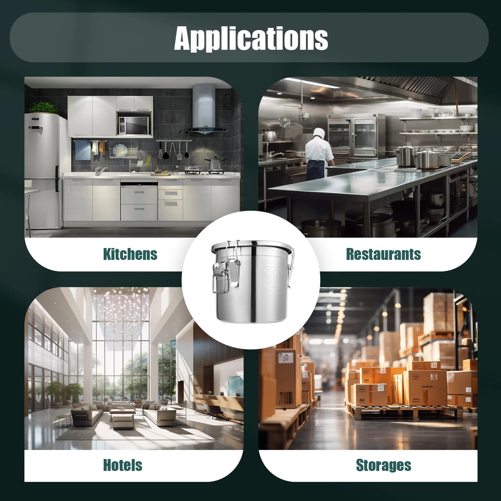 Bucket 304 Stainless Steel Airtight Storage Canister With Handles