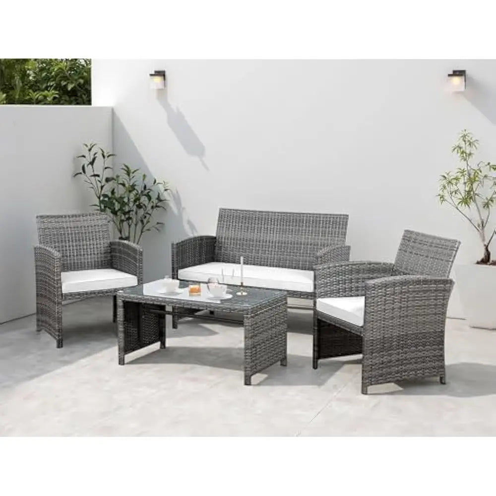 Escape to effortless outdoor lounging with the Folded Rattan Patio Set 4 Piece Outdoor Furniture Cushions, where durable, stylish design invites you to unwind in comfort all season long.