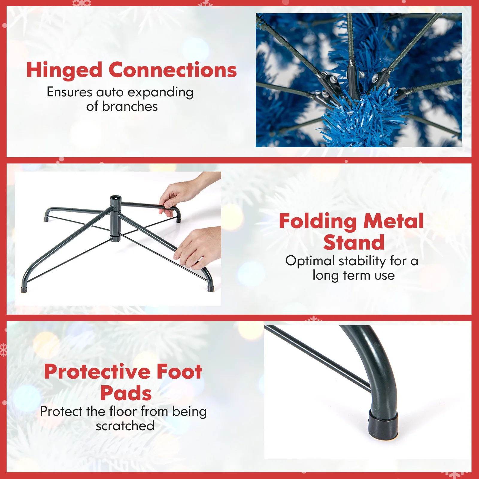- Hinged, auto-expanding branches and a sturdy folding metal stand mean secure, clutter-free setup in minutes, so you can start celebrating immediately without tools.