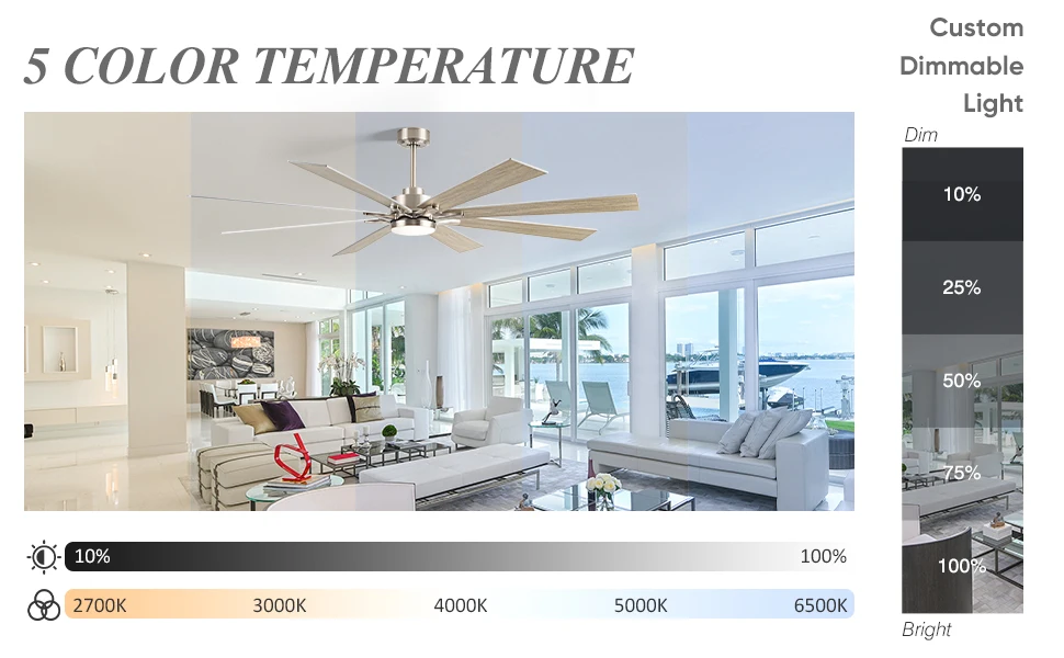 - Remote control for precision—operate the fan and LED light separately with 6 speeds, 5 color temperatures, and 1/4/8-hour timers.