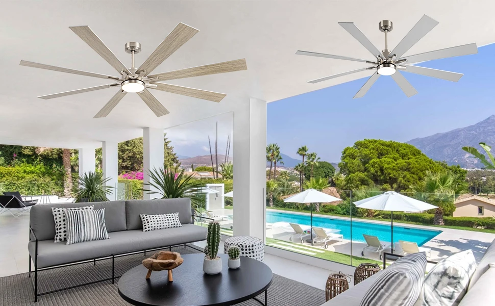 ILROOMH Industrial Ceiling Fan With Light 8 Blades Noiseless Reversible DC Motor