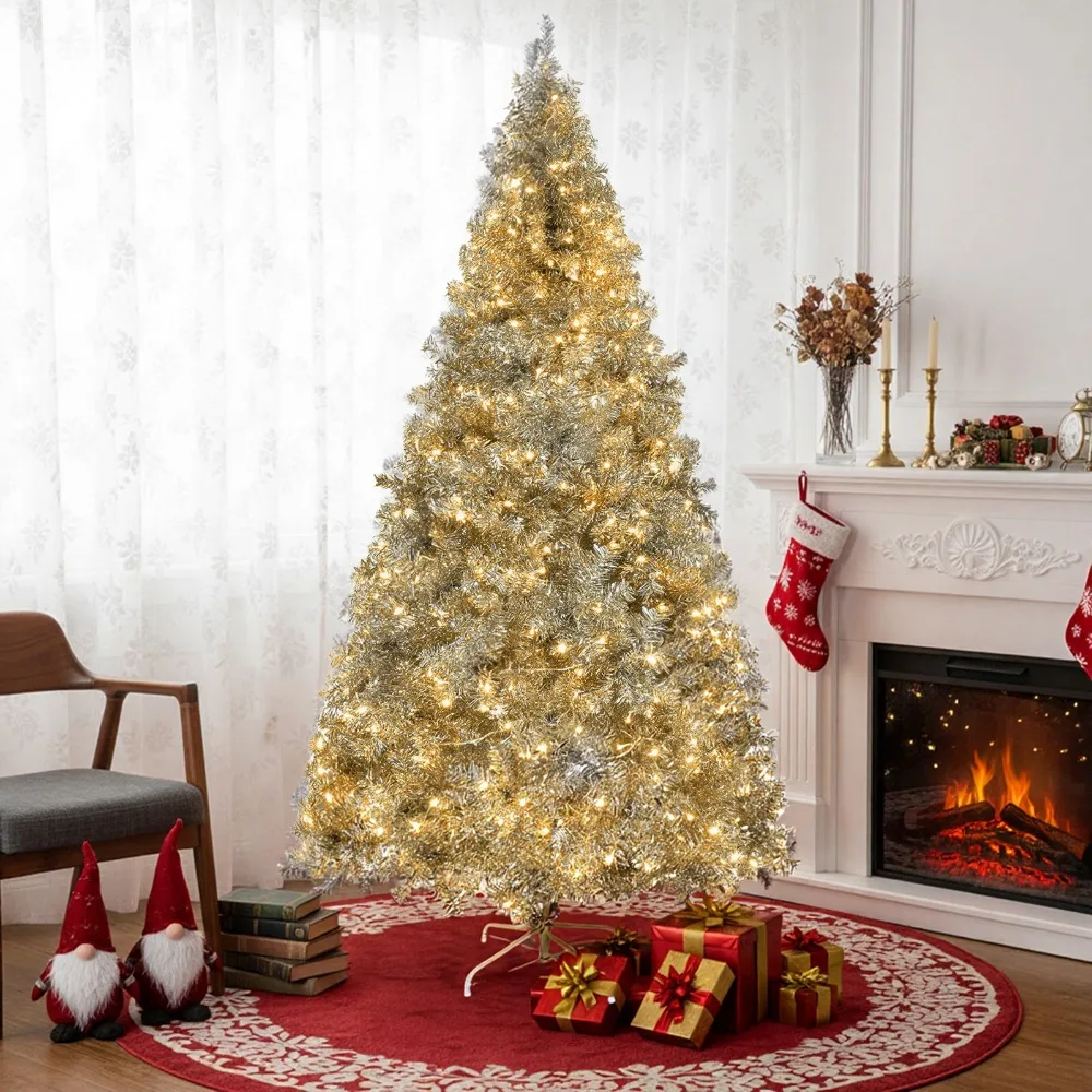 - You get warm-white LED lights that scale with height — 300 (6 ft), 450 (7 ft), or 550 (8 ft) across 8 modes for customizable sparkle.