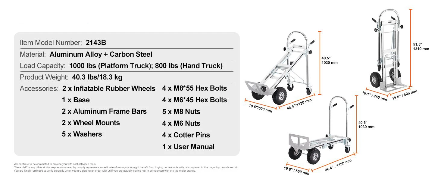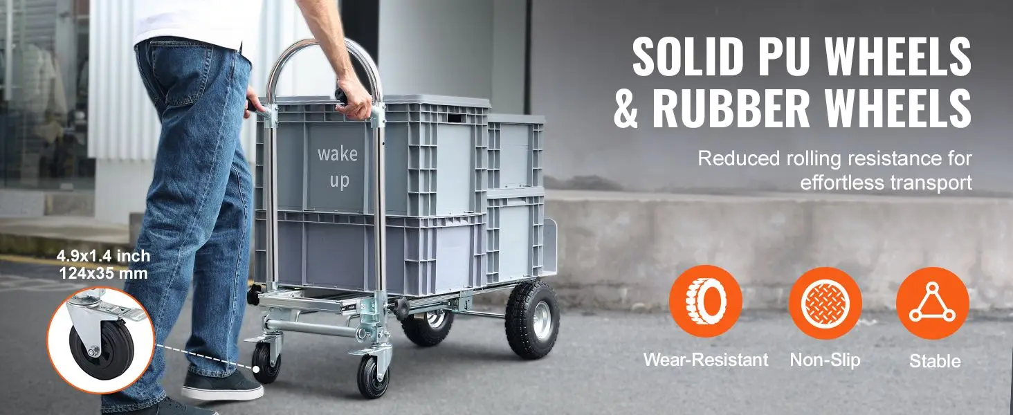 - 4-in-1 versatility: You can quickly convert between a hand truck and a platform cart (and two additional modes) to move diverse loads with ease.