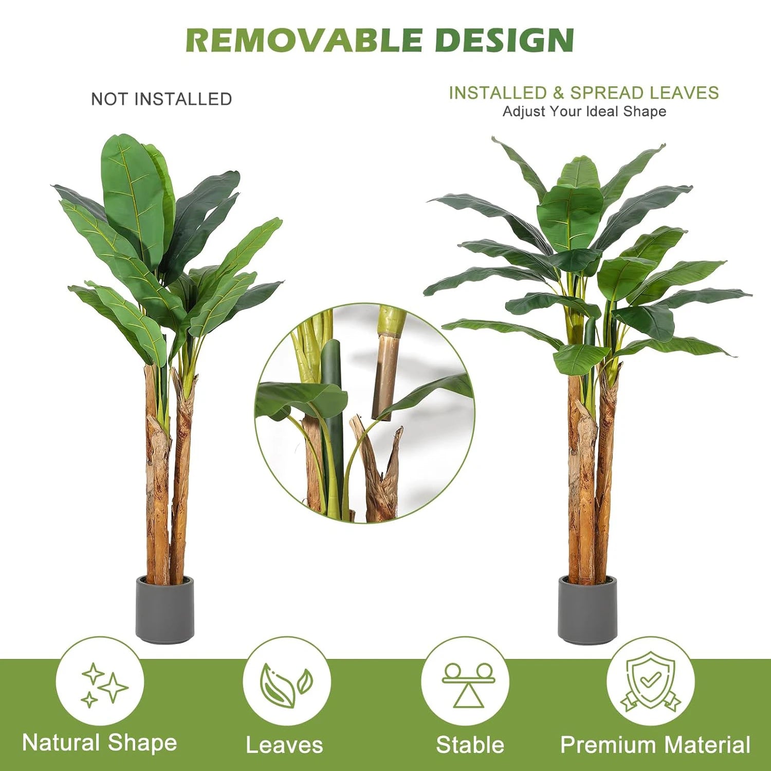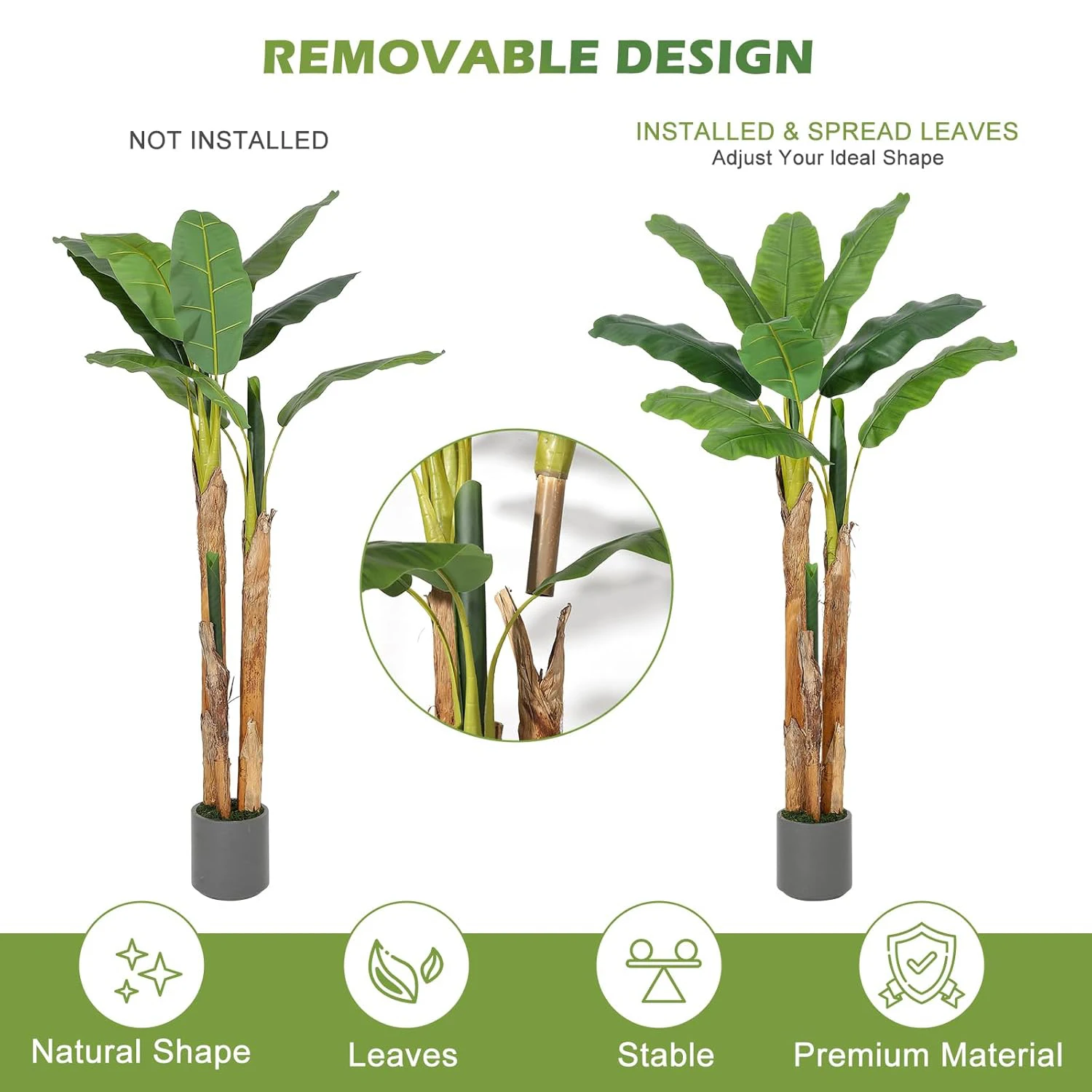 - You get a lifelike banana-tree silhouette with vibrant faux leaves and a durable plastic planter, built for lasting use.