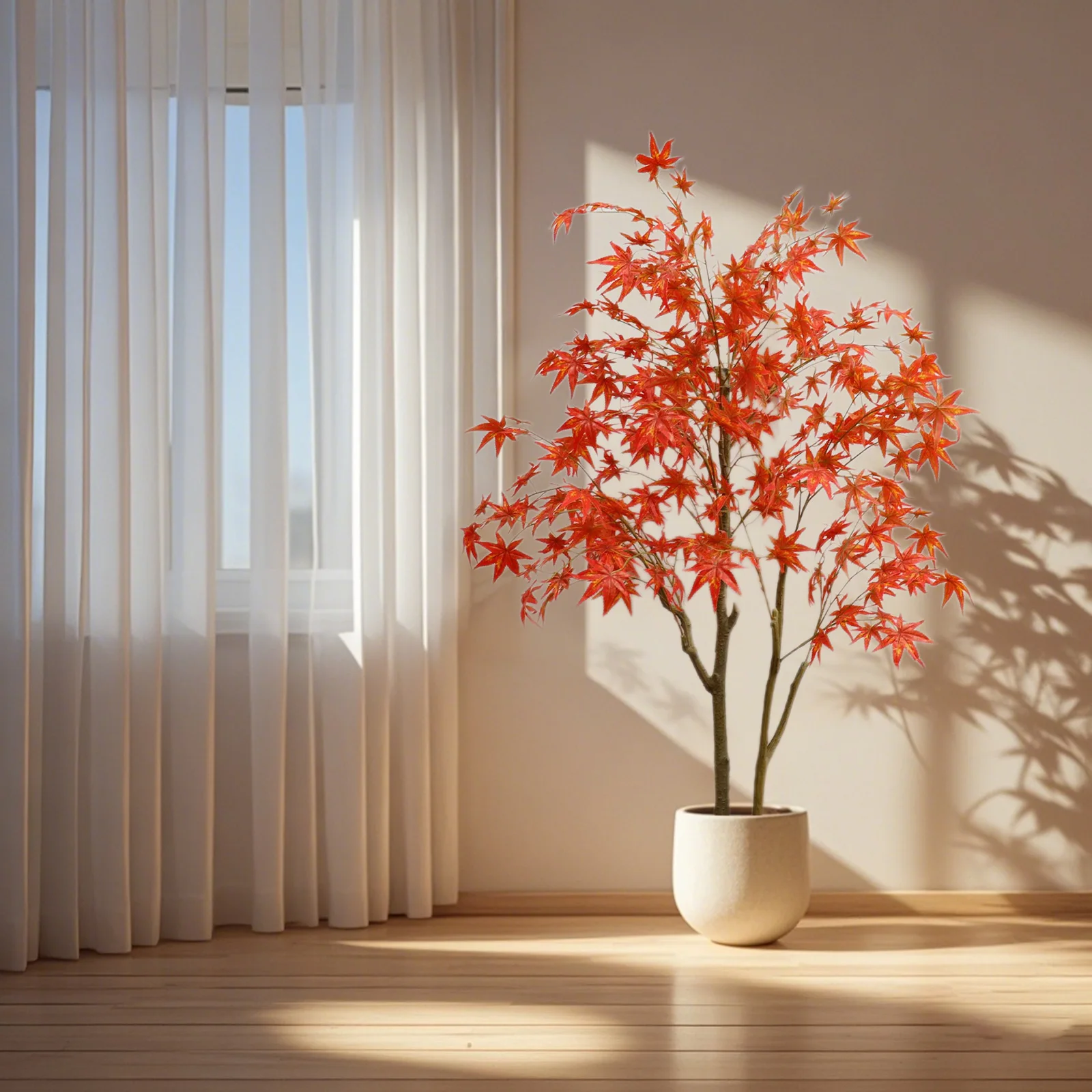 Bring the warmth of autumn into your space with a lifelike maple tree that stays vibrant year-round.