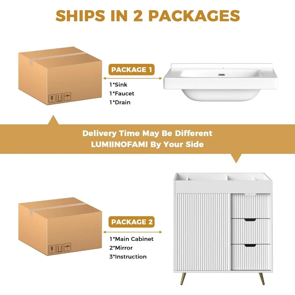 - All-in-one convenience: You get the cabinet, ceramic sink, faucet, drain, and a matching mirror in a single, easy purchase.
