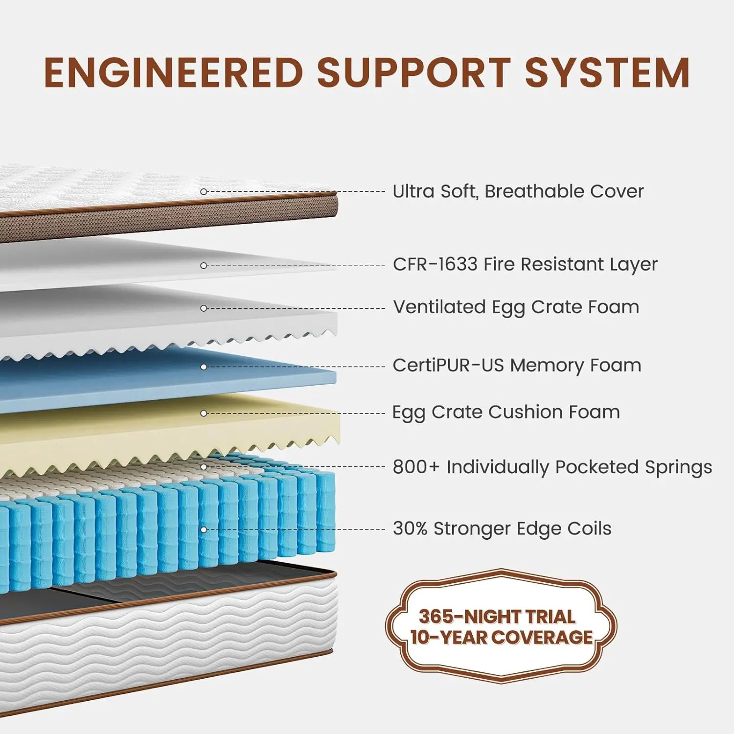 BedStory Hybrid Mattress With Gel Memory Foam And Springs
