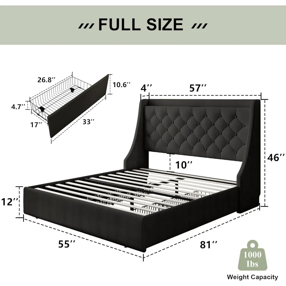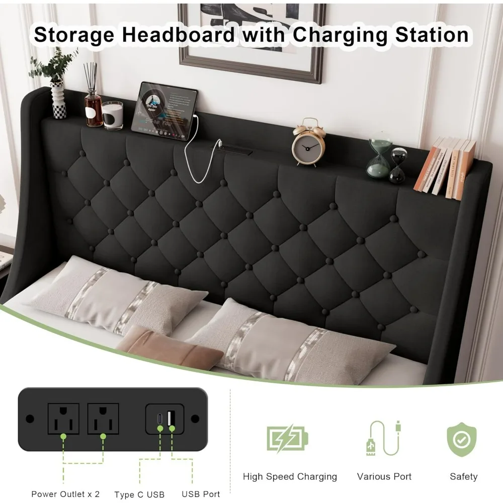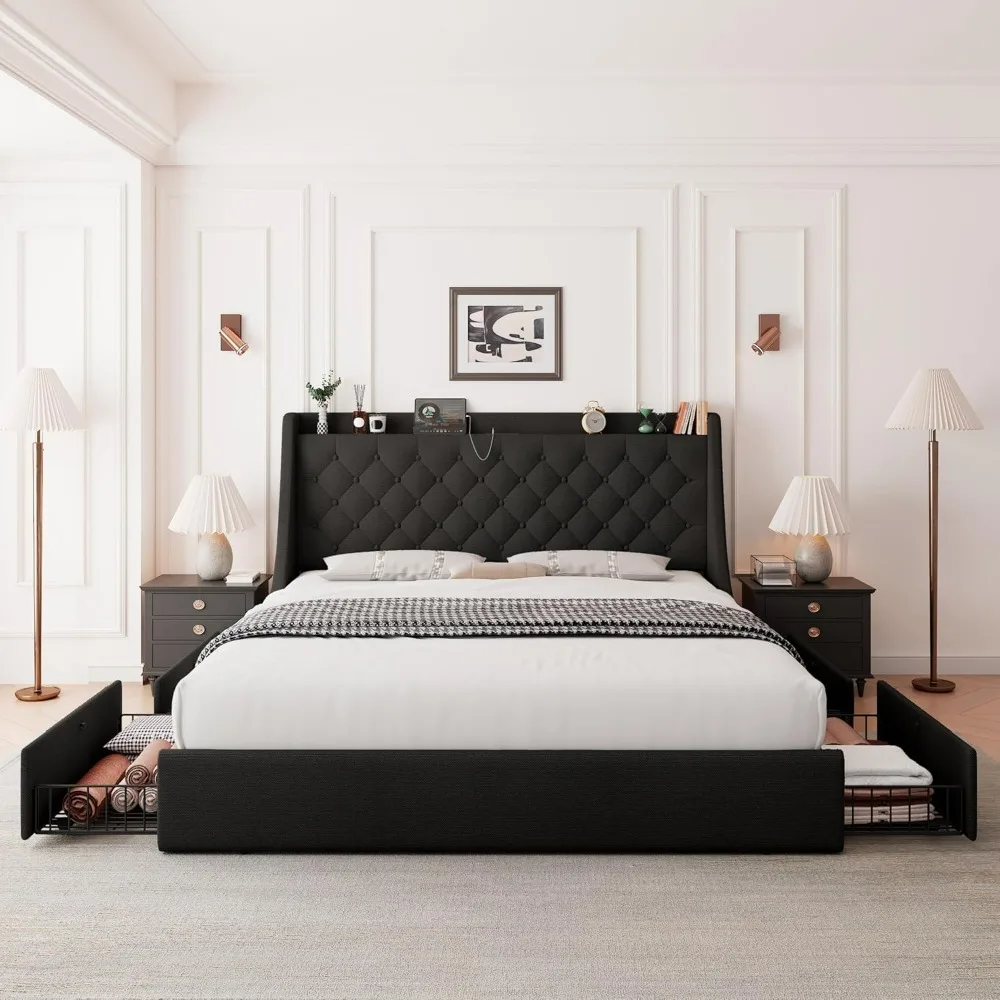 XMSJ Wingback Bed With Storage Drawers And Headboard