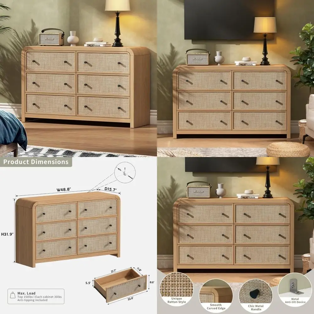 Transform your bedroom with the TIFICY Boho Rattan 6 Drawer Dresser, where natural oak finish, bohemian textures, and modern lines create inviting storage that complements any decor.