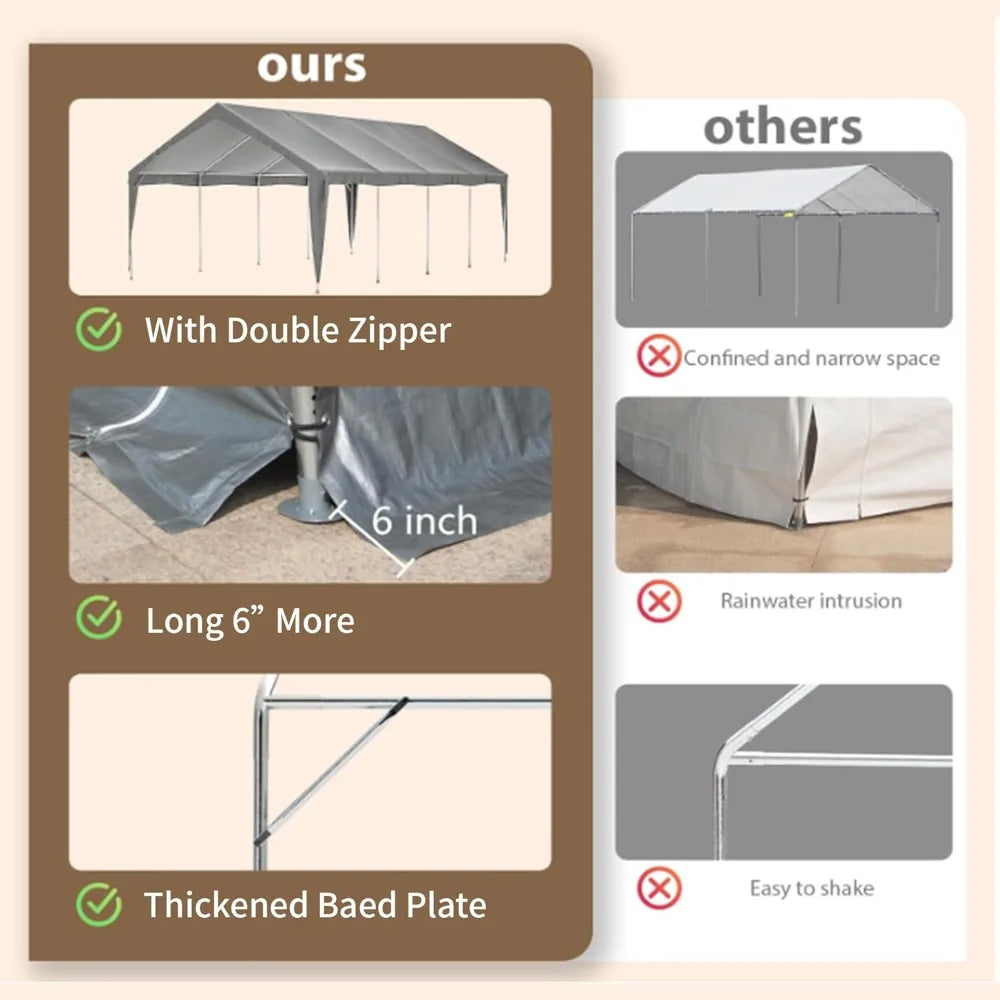 Carport Heavy Duty Canopy With Doors And Windows Portable Garage