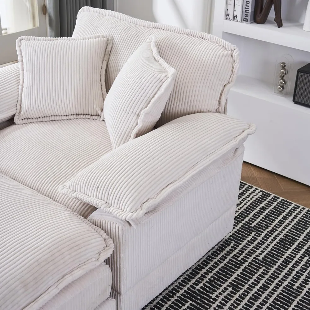 - Corduroy upholstery with high-resilience foam and a spring system for lasting, quick-recovery comfort.