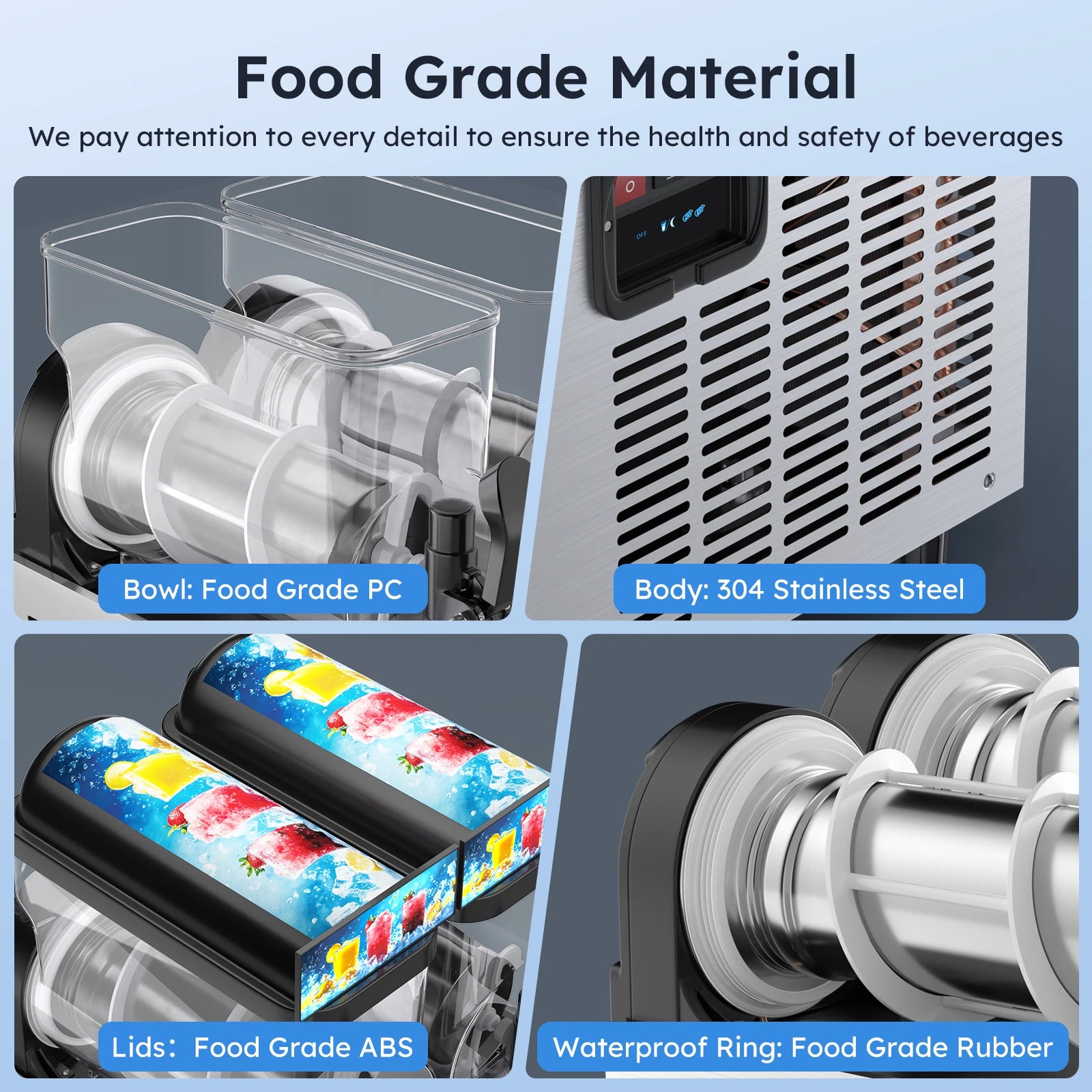 - Commercial-grade build: 304 stainless steel body with FDA-compliant PC/ABS tanks for durability and easy cleaning.
