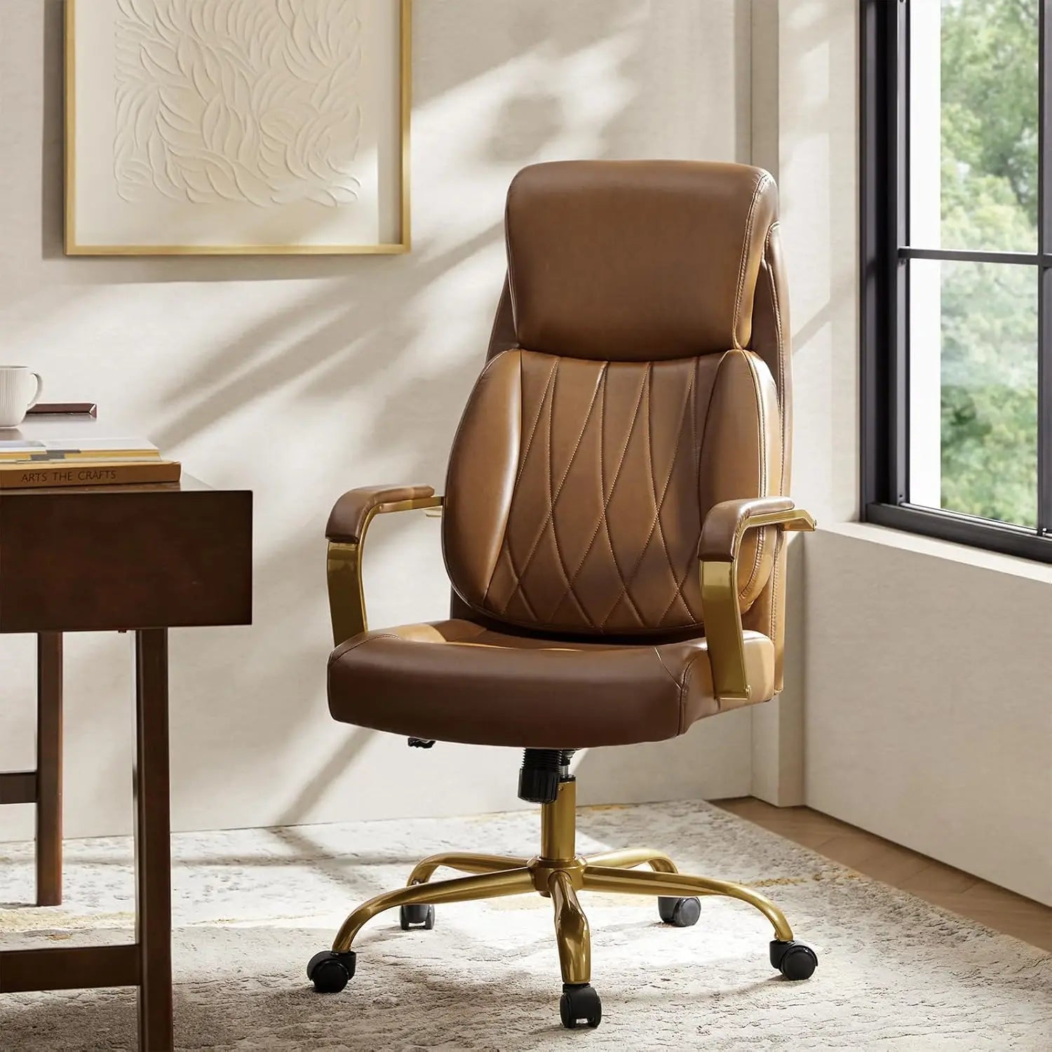 HUANZHUANG Executive Office Chair With Adjustable Lumbar Support Leather Ergonomic Chair Padded Armrests Tilt