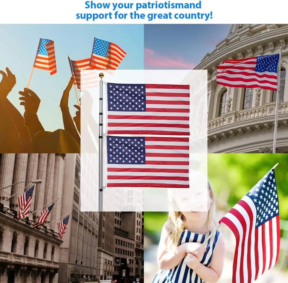 - All-in-one kit lets you install in minutes: 20ft or 25ft pole, gold ball finial, 3x5 American flag, carabiners, and a PVC ground sleeve for stable anchoring.
