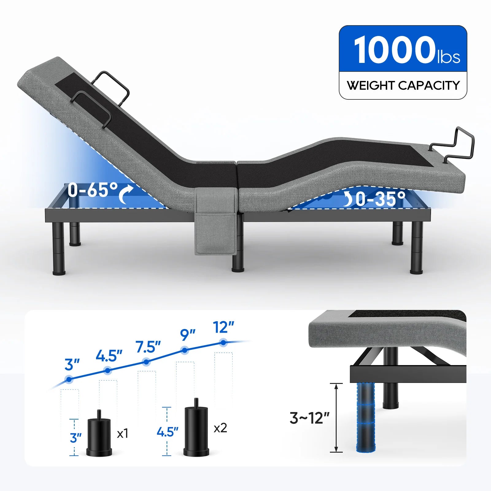 - Built to last with a sturdy metal frame, it supports 1,000 lbs flat and 500 lbs lifting; tool-free assembly and adjustable legs (3"–12") fit any mattress.