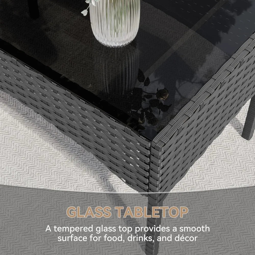 - Smart table design: A rectangular table with a tempered glass top provides a sleek centerpiece and easy-care surface; total weight around 52.9 pounds keeps the set stable on your patio.