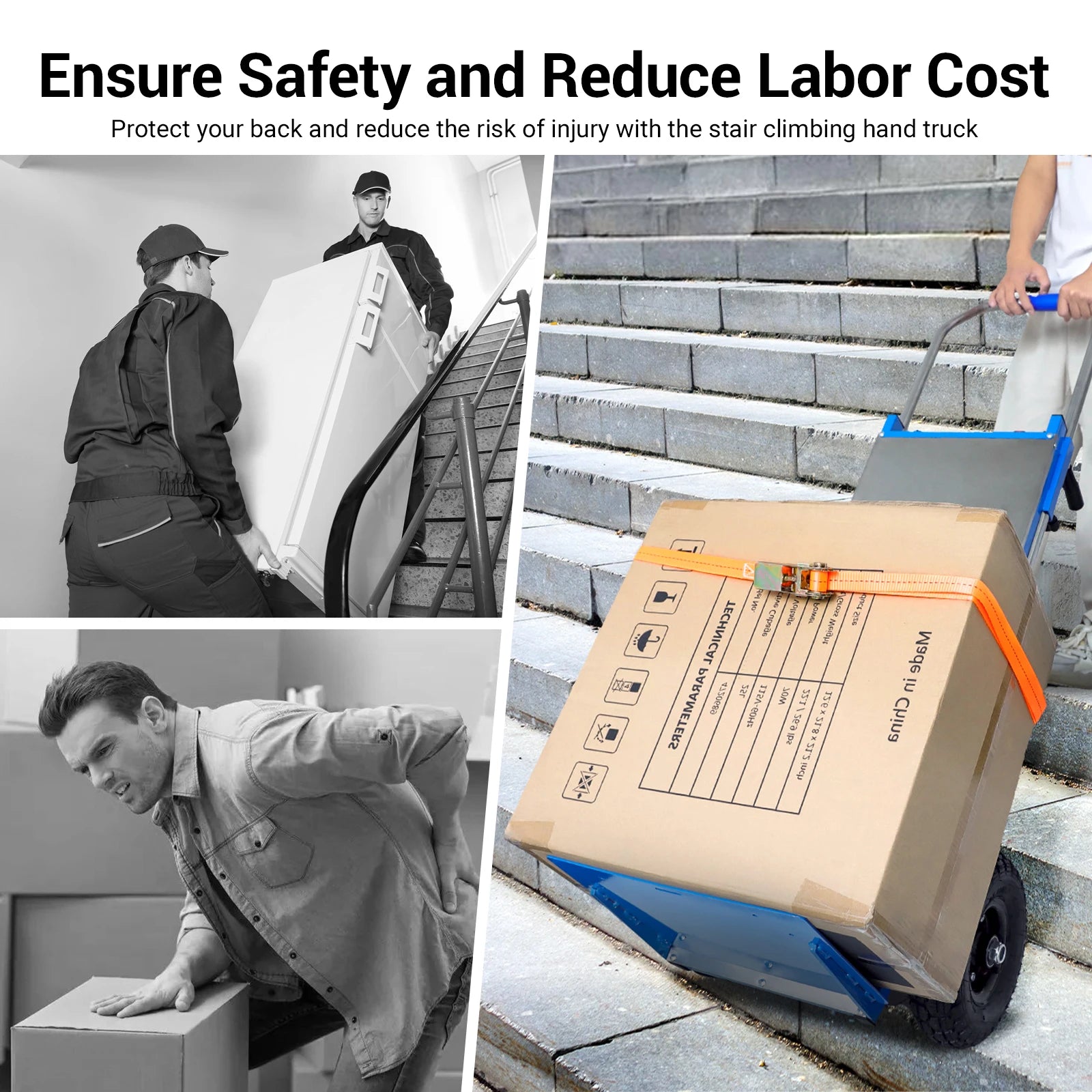 Conquer staircases with confidence using a heavy-duty electric stair-climbing hand truck that handles up to 880 lbs.