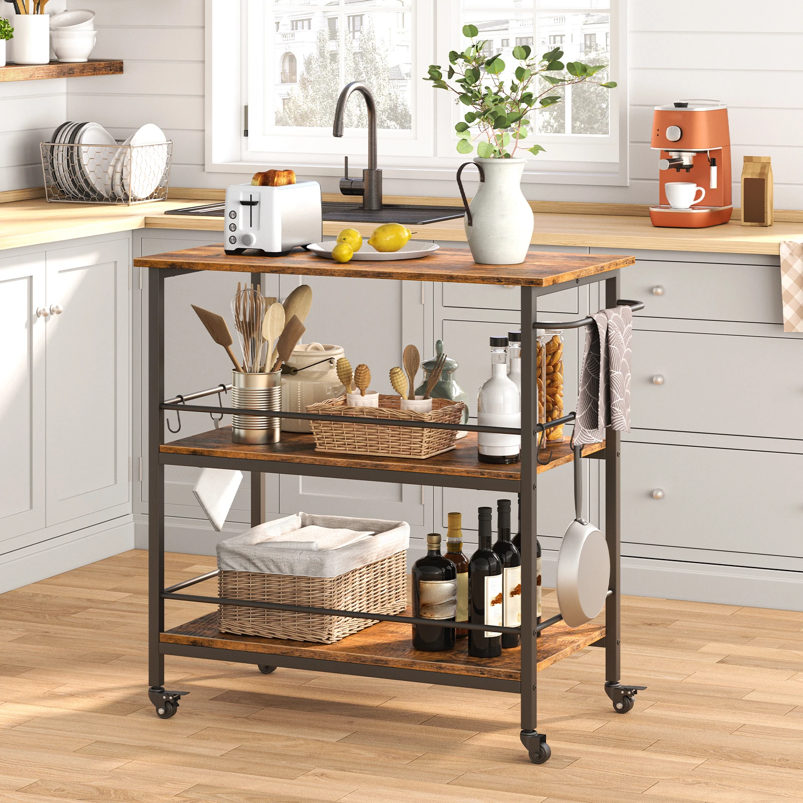 HOOBRO Kitchen Island Cart With Storage And Hooks Shelves