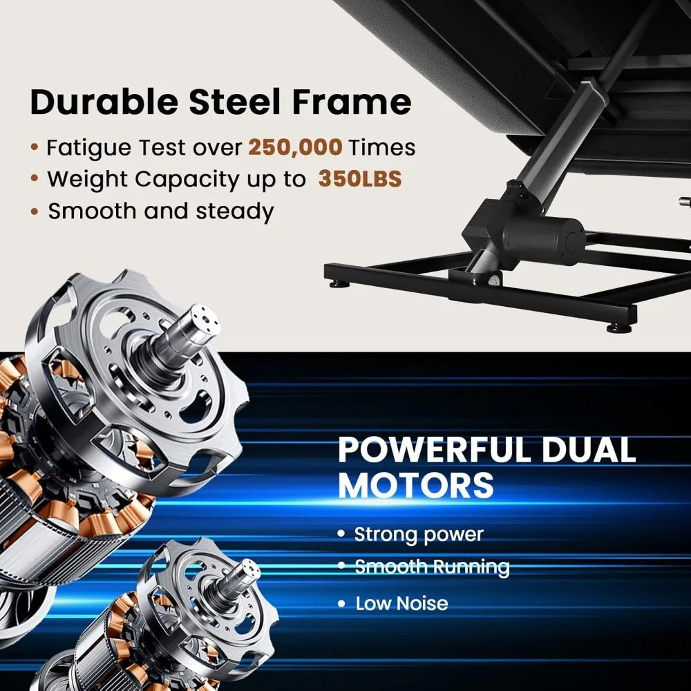 - Dual-motor customization lets you adjust the backrest and footrest independently for your precise comfort, providing you with 27" lumbar support to 75" full recline.