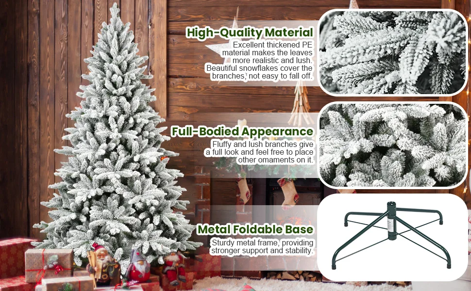 Transform your holiday space with a lush, flocked Christmas tree that stays gorgeous season after season.