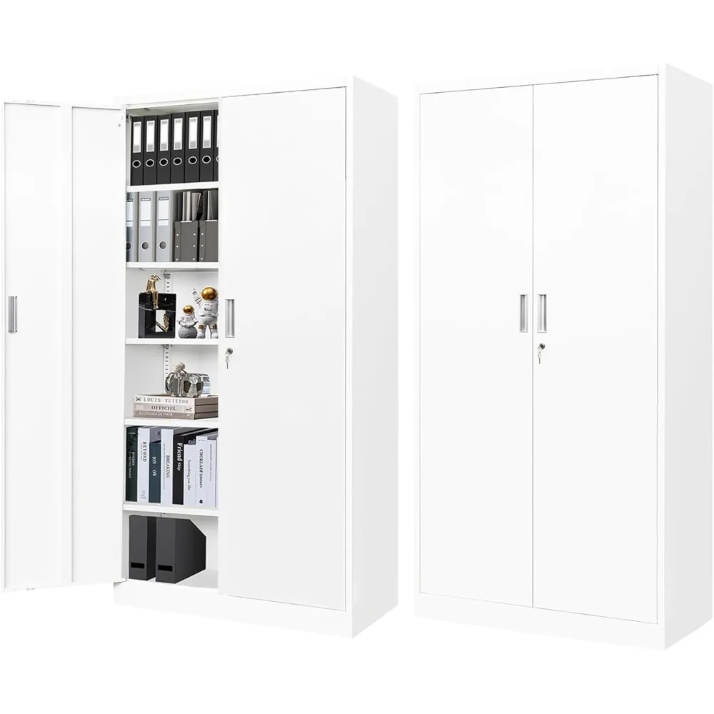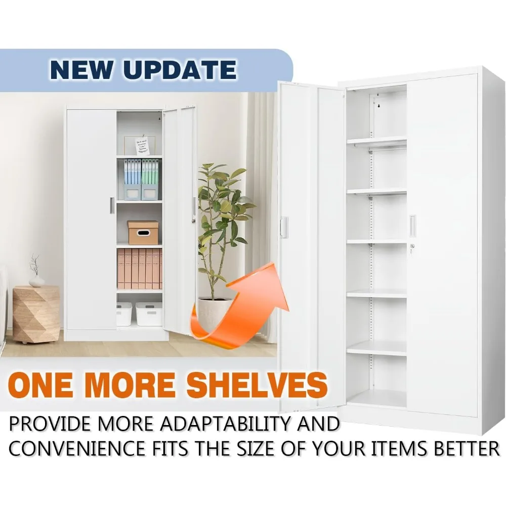 Metal Cabinet With 5 Adjustable Shelves And 2 Locking Doors