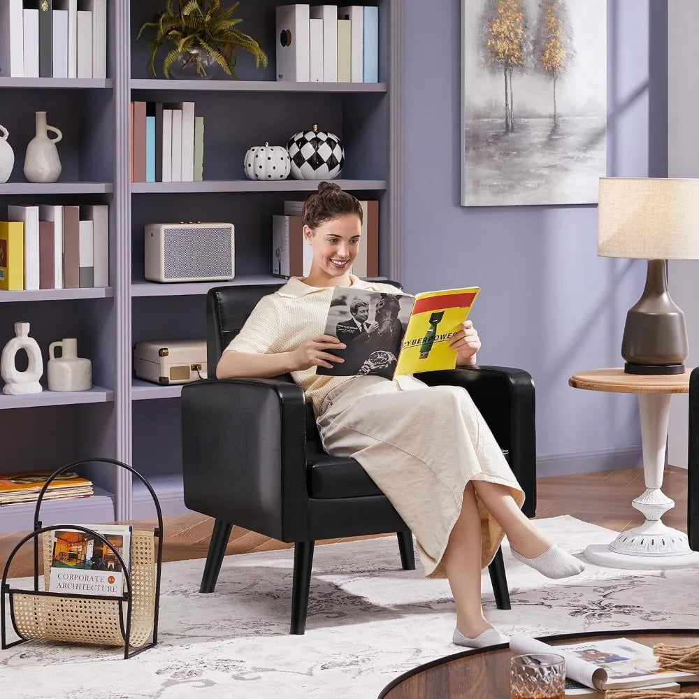 LZJV Mid-Century Faux Leather Tufted Back Accent Chair