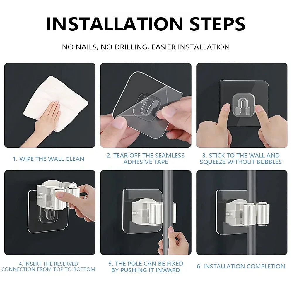 - Durable & strong adhesive keeps mops, brooms, and umbrellas neatly organized on smooth surfaces without slipping, supporting your daily cleaning routines.