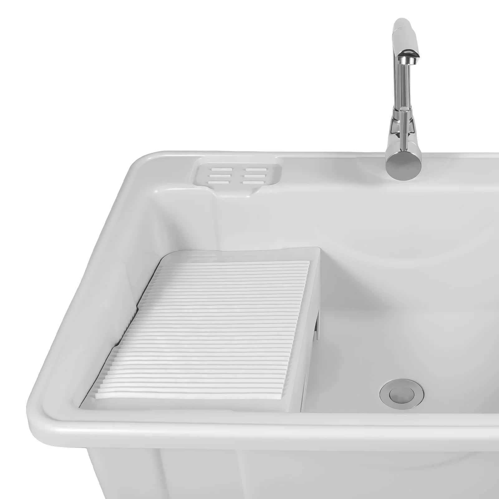 - 2-in-1 versatility: A roomy rectangular sink (27.56" x 16.93" x 9.45") plus a hollow lower shelf for detergents; removable washboard pairs with the faucet for quick washing.