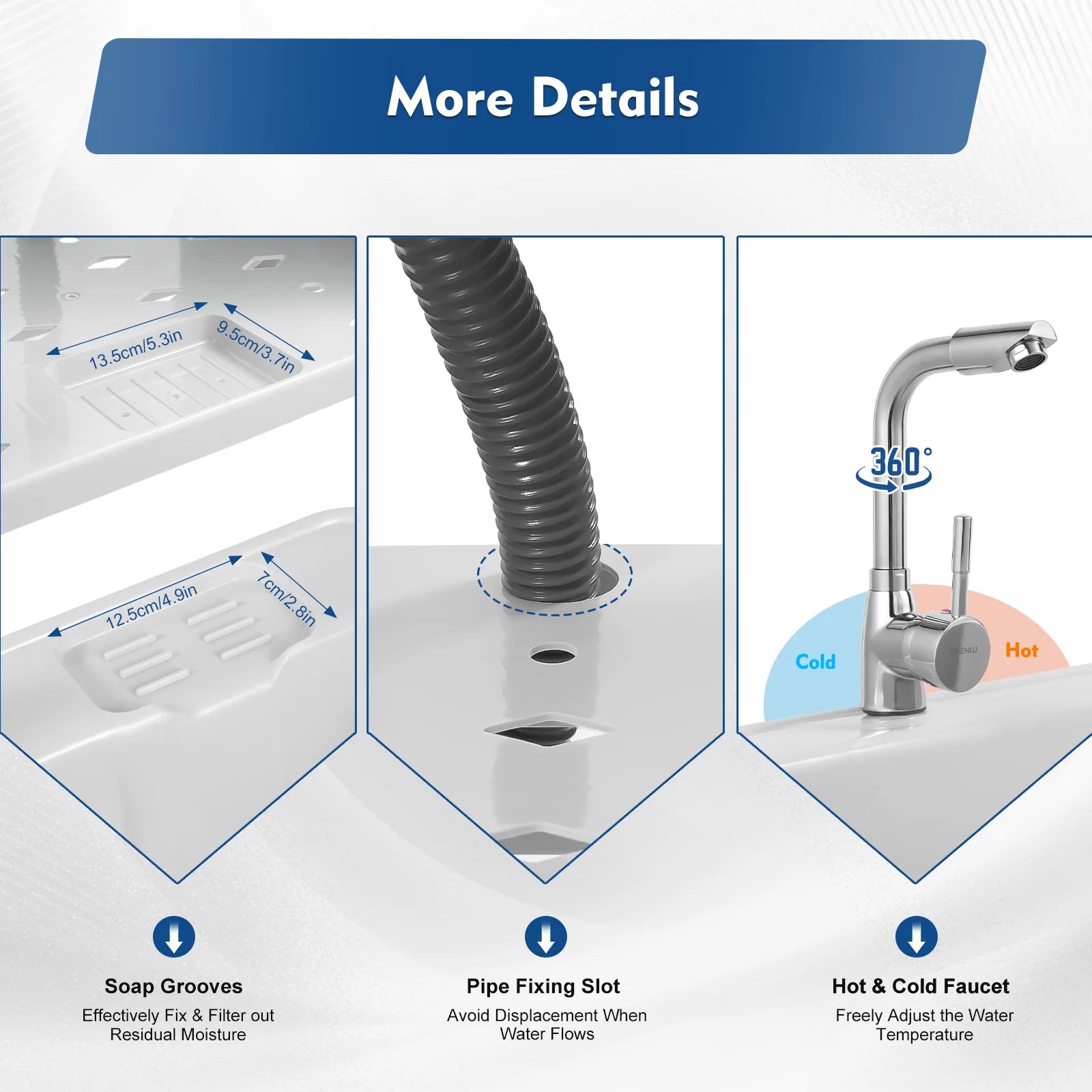 - Built to last: Crafted from high-hardness PP for weather, wear, and impact resistance; this sink can bear up to 441 lbs, making it stable in humid bathrooms and laundry spaces.