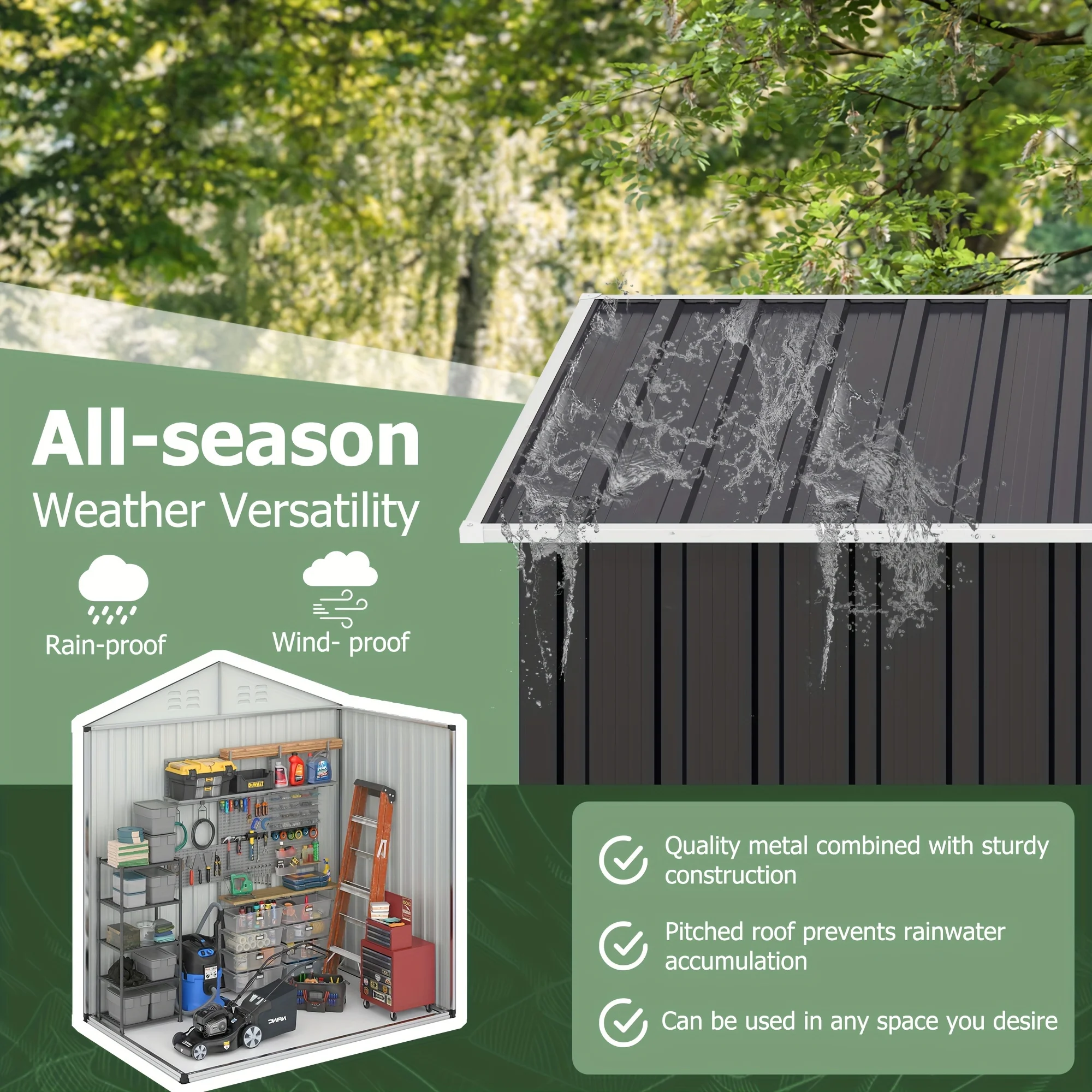 - Durable materials and support: Premium color steel resists deformation, UV and rain exposure; sturdy corner guards and reinforced packaging shield your shed, with responsive customer support if needed.