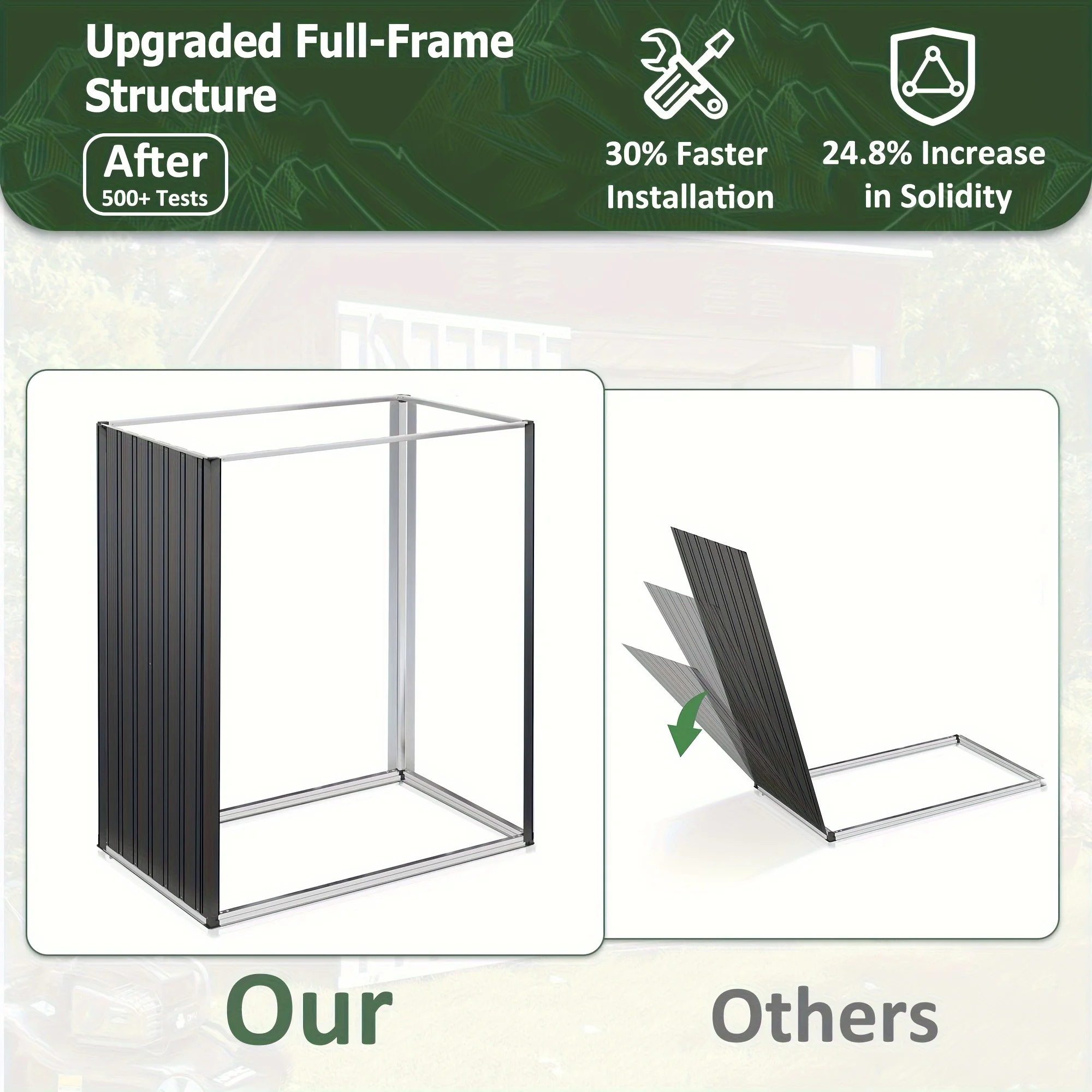 - Upgraded frame design: Experience a sturdier shed with a full-frame construction that speeds up assembly—about 35% easier installation according to tests, plus improved long-term stability.