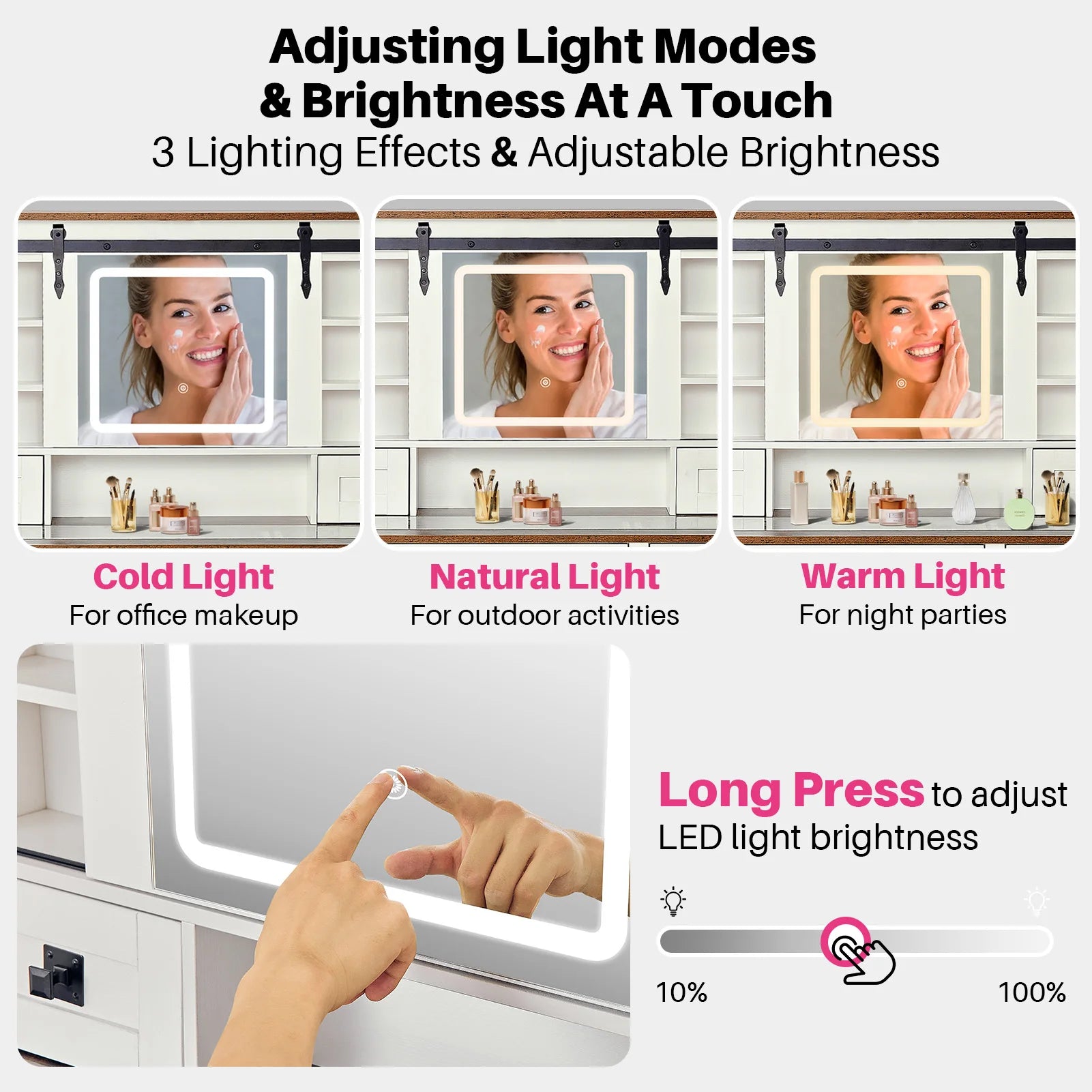 - Smart storage: 4 drawers, 1 cabinet with adjustable shelves, and dedicated jewelry compartments keep brushes, accessories, and jewelry organized at your fingertips.