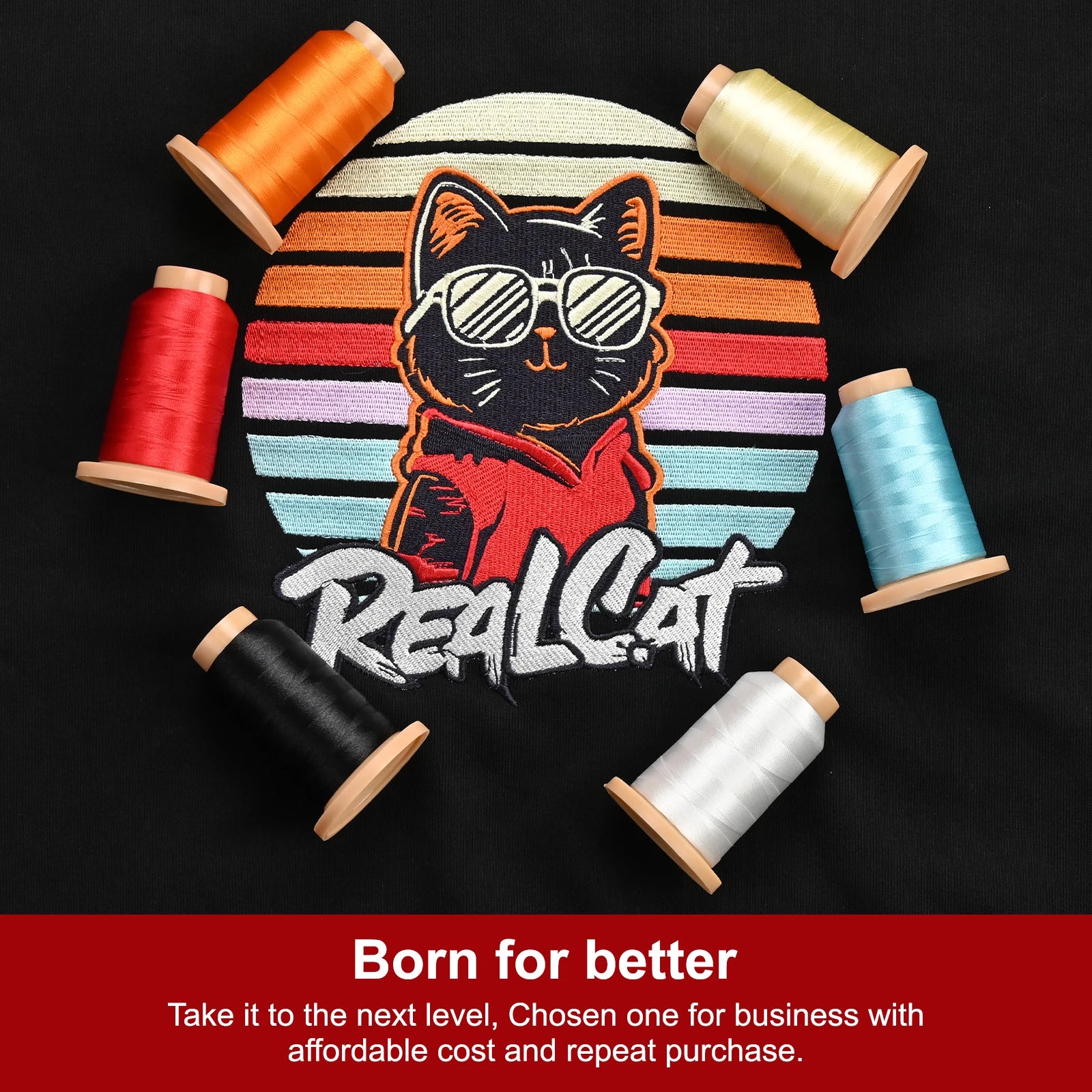 - High-tenacity, 100% polyester thread that resists wear and washing, helping your designs stay bright over time.