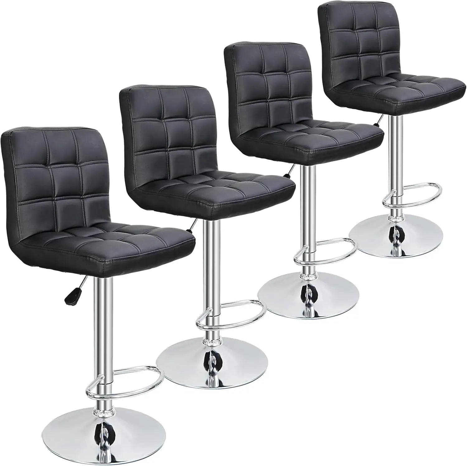 HUANZHUANG Set Of 4 Adjustable Swivel PU Leather Bar Stools