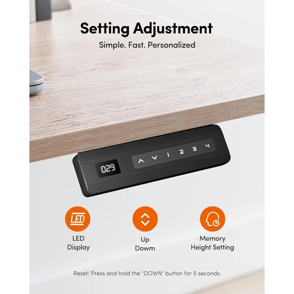 - Electric height adjustment lets you smoothly switch from sitting to standing at the press of a button, keeping you moving throughout the day.