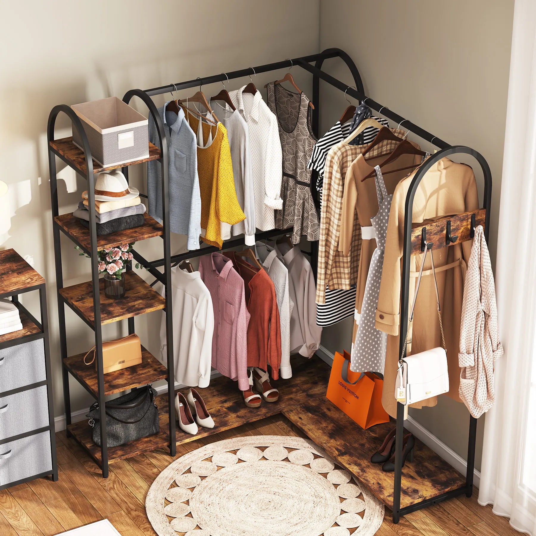 Tribesigns L Shape Clothes Rack With Storage Shelves And Hanging Rods Space Saving Corner Wardrobe