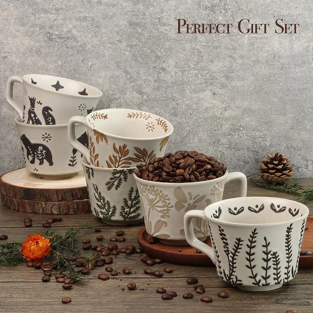 XMSJ Unique Ceramic Mugs Set 4 Nature Inspired Teacups
