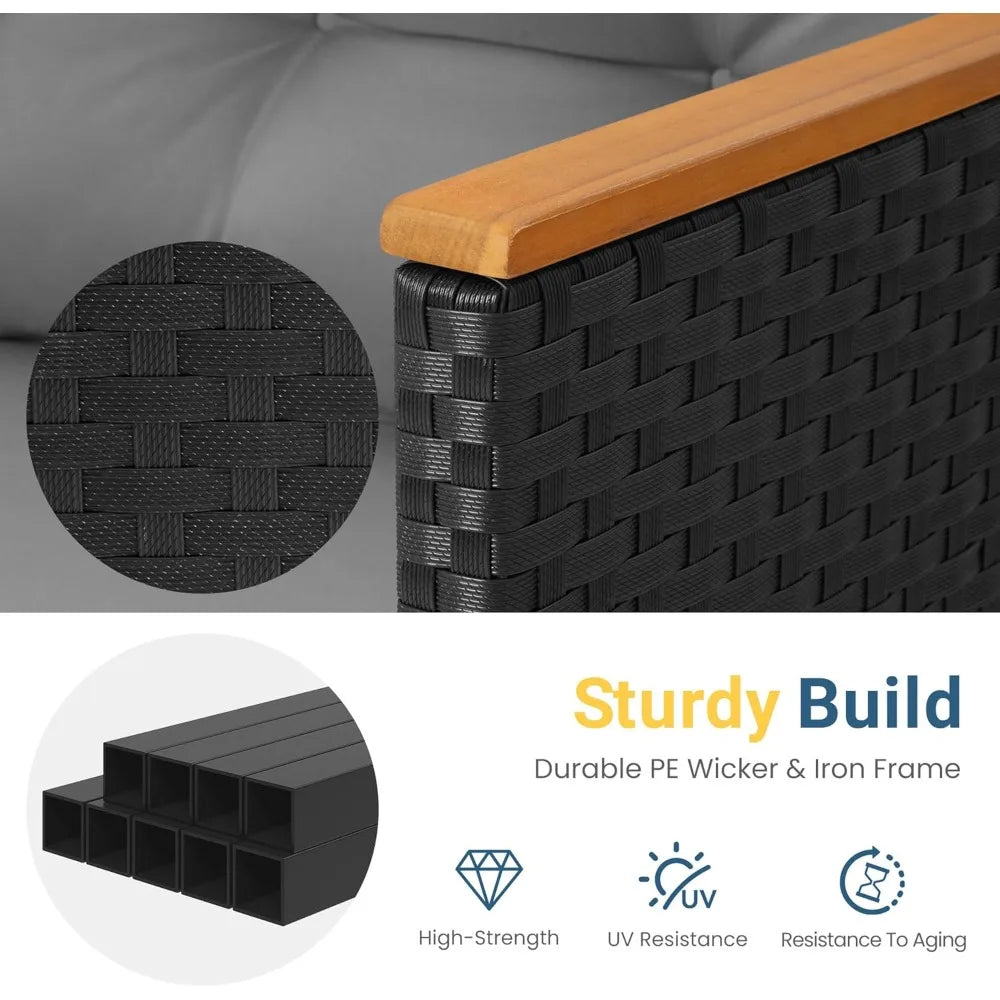 - Sturdy all-weather construction: a reinforced iron frame wrapped in handwoven PE rattan delivers lasting stability and charm, with each seat supporting up to 352.73 lbs and a solid acacia wood table top that resists temperature changes and moisture.